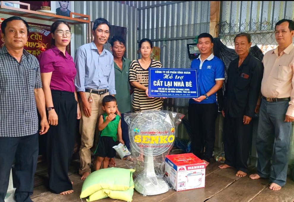 - 05/10/2025Chiều ngày 3/10/2025, UBND xã Vĩnh Xương phối hợp cùng Ủy ban MTTQ Việt Nam xã; Công ty TNHH Sản xuất giống cá tra Vĩnh Hoàn và Ban Nhân dân ấp Vĩnh Thạnh Đ tổ chức lễ bàn giao nhà bè mới cho hộ chị Nguyễn Thị Ngọc Dung, ngụ tại tổ 6, ấp Vĩnh Thạnh Đ, là hộ cận nghèo của địa phương.