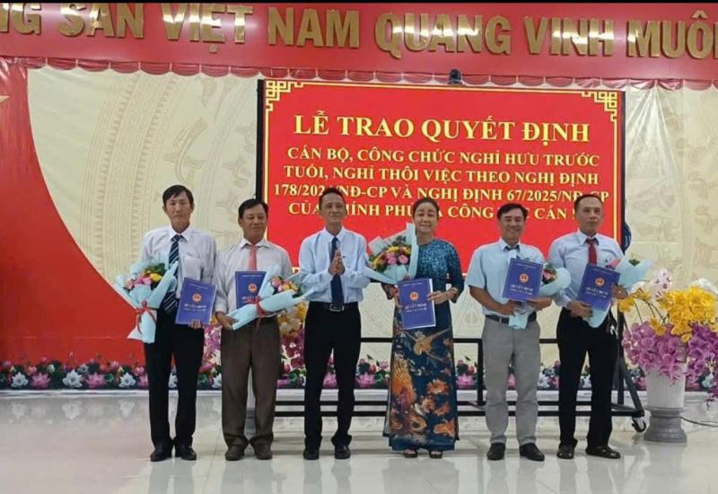 - 29/09/2025Sáng ngày 29/09/2025, Đảng ủy - UBND xã Vĩnh Xương tổ chức lễ trao Quyết định nghỉ hưu trước tuổi, nghỉ thôi việc theo Nghị định số 178/2024/NĐ-CP và Nghị định số 67/2025/NĐ-CP của Chính phủ và công tác cán bộ.