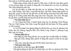 - 06/06/2024Căn cứ biên bản đo đạc ngày 05/04/2024 của đơn vị Văn phòng Đăng ký đất đai Chi nhánh Tân Châu thực hiện thủ tục hành chính về đất đai của ông Phan Văn Toàn, sinh năm 1990, khu đất toạ lạc tại ấp 1, xã Vĩnh Xương, thị xã Tân Châu, An Giang. Tại thời điểm đo đạc không có mặt chủ sử dụng đất tiếp cận là ông Lê Văn Dỵ và bà Huỳnh Thị Định.