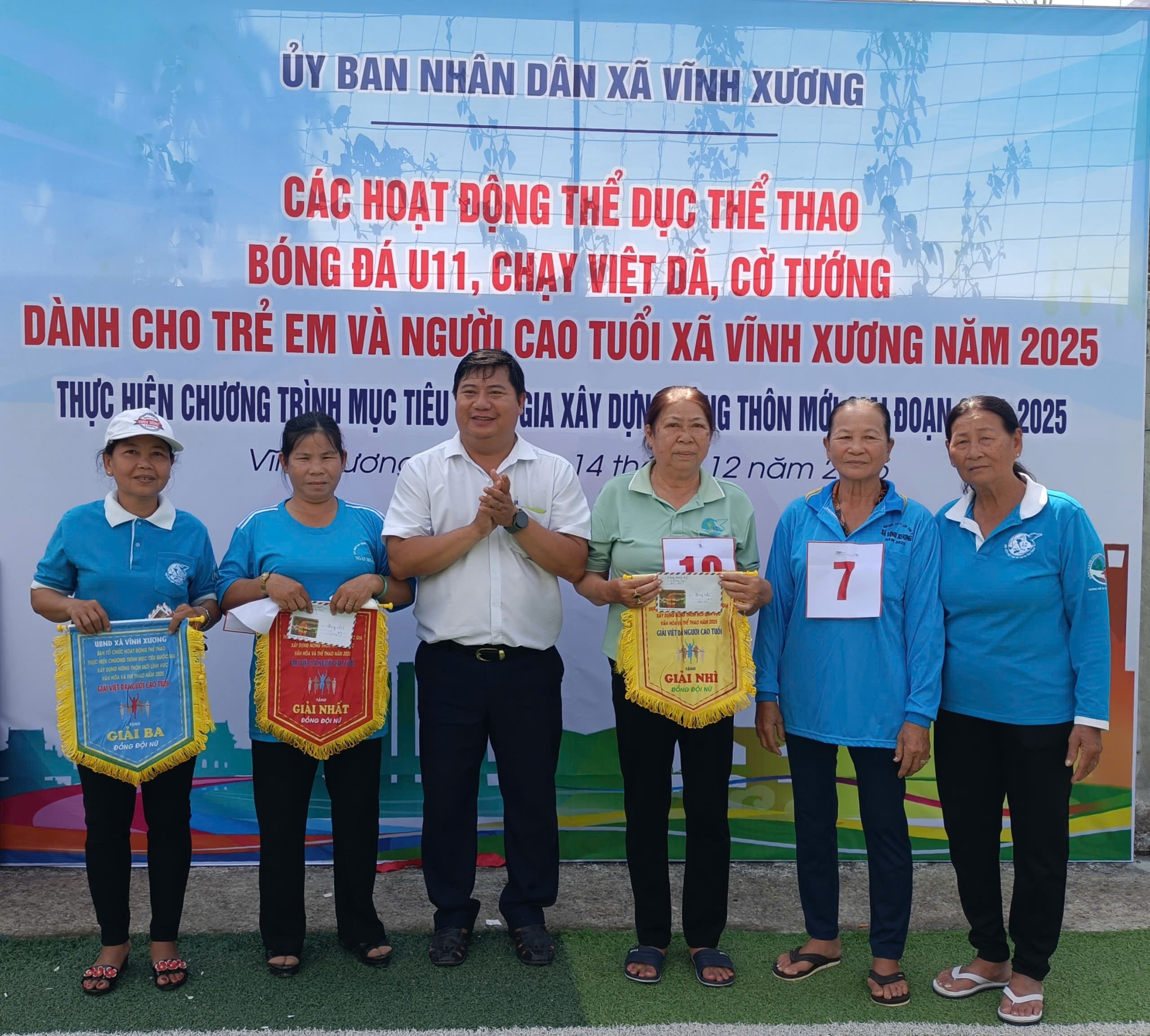 Thực hiện Chương trình mục tiêu quốc gia xây dựng nông thôn mới giai đoạn 2021 – 2025. Được sự ủy nhiệm của Sở Văn hóa và Thể thao tỉnh An Giang, từ ngày 10 đến ngày 14/12/2025, Ủy ban nhân dân xã Vĩnh Xương, Ban tổ chức các hoạt động thể thao dành cho trẻ em và người cao tuổi xã Vĩnh Xương năm 2025 đã tổ chức thành công các môn thể thao như bóng đá U11, chạy việt dã và cờ tướng dành cho người cao tuổi xã Vĩnh Xương năm 2025. Có 231 vận động viên là trẻ em và người cao tuổi thuộc các địa bàn ấp trong xã tham gia thi đấu; trong đó: