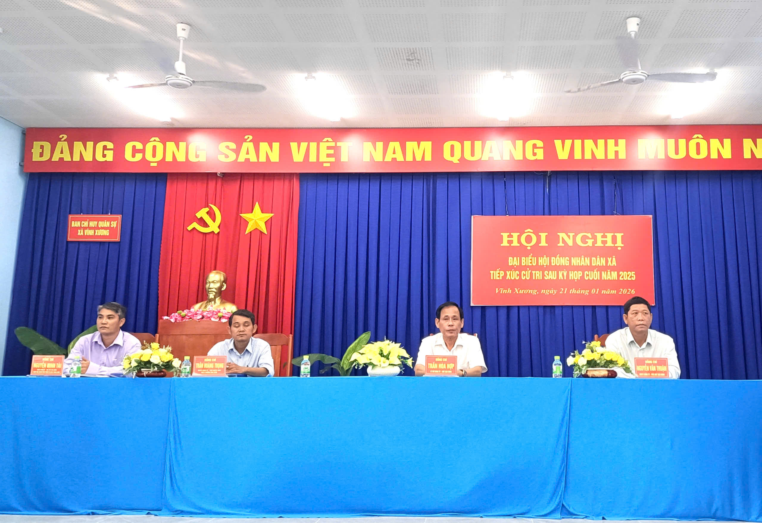 Sáng ngày 21/01/2026, Đại biểu Hội đồng Nhân dân xã Vĩnh Xương đã tổ chức buổi tiếp xúc cử tri sau kỳ họp cuối năm 2025 với hơn 50 bà con cử tri trên địa bàn các ấp Phú Quý, Phú Yên và Phú Bình.
