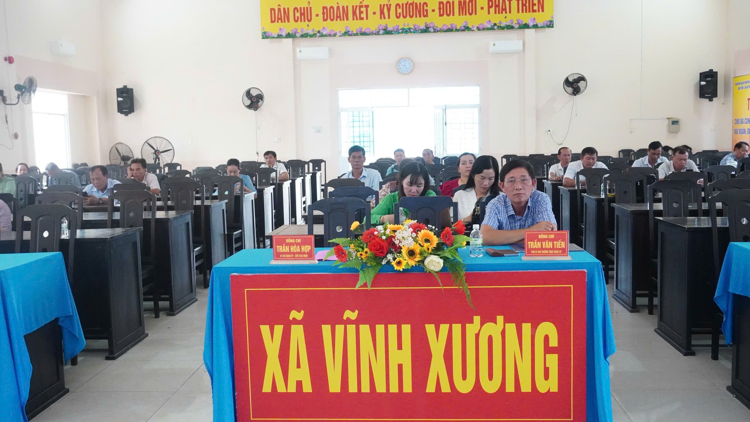 Tham dự tại điểm cầu xã Vĩnh Xương có ông Trần Văn Tiến – Phó Bí thư thường trực Đảng uỷ.