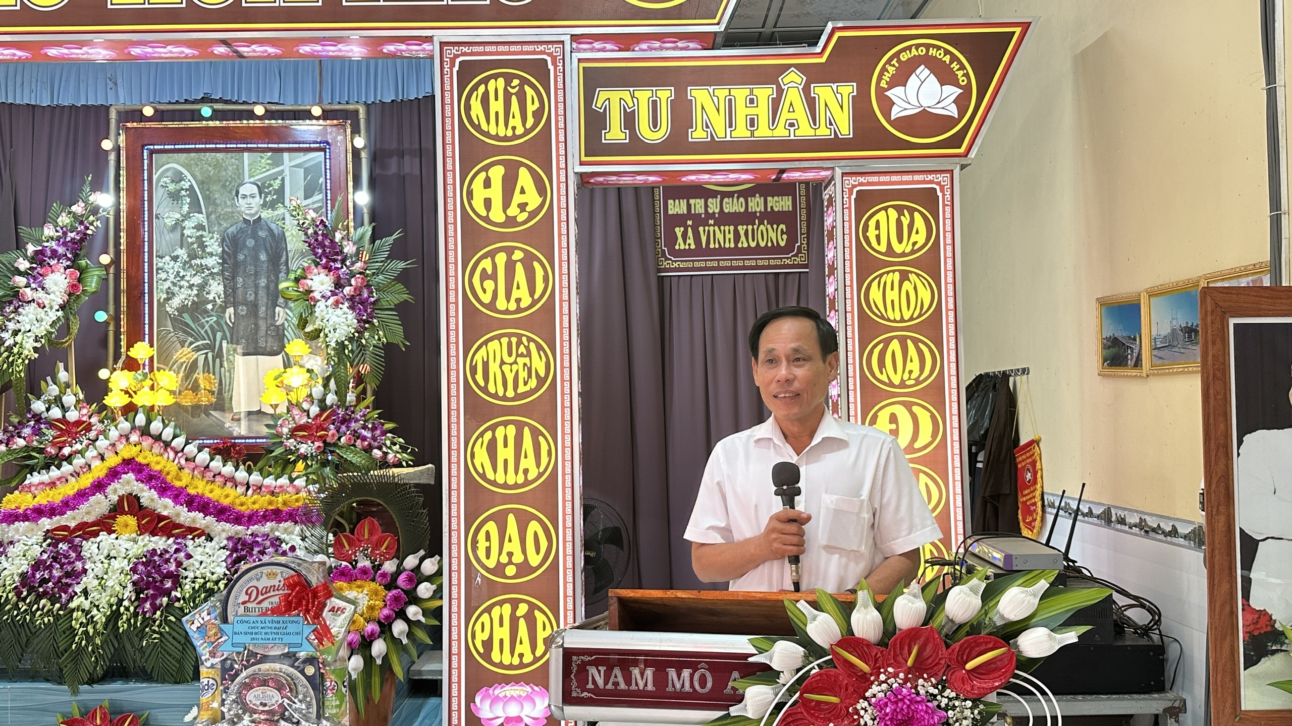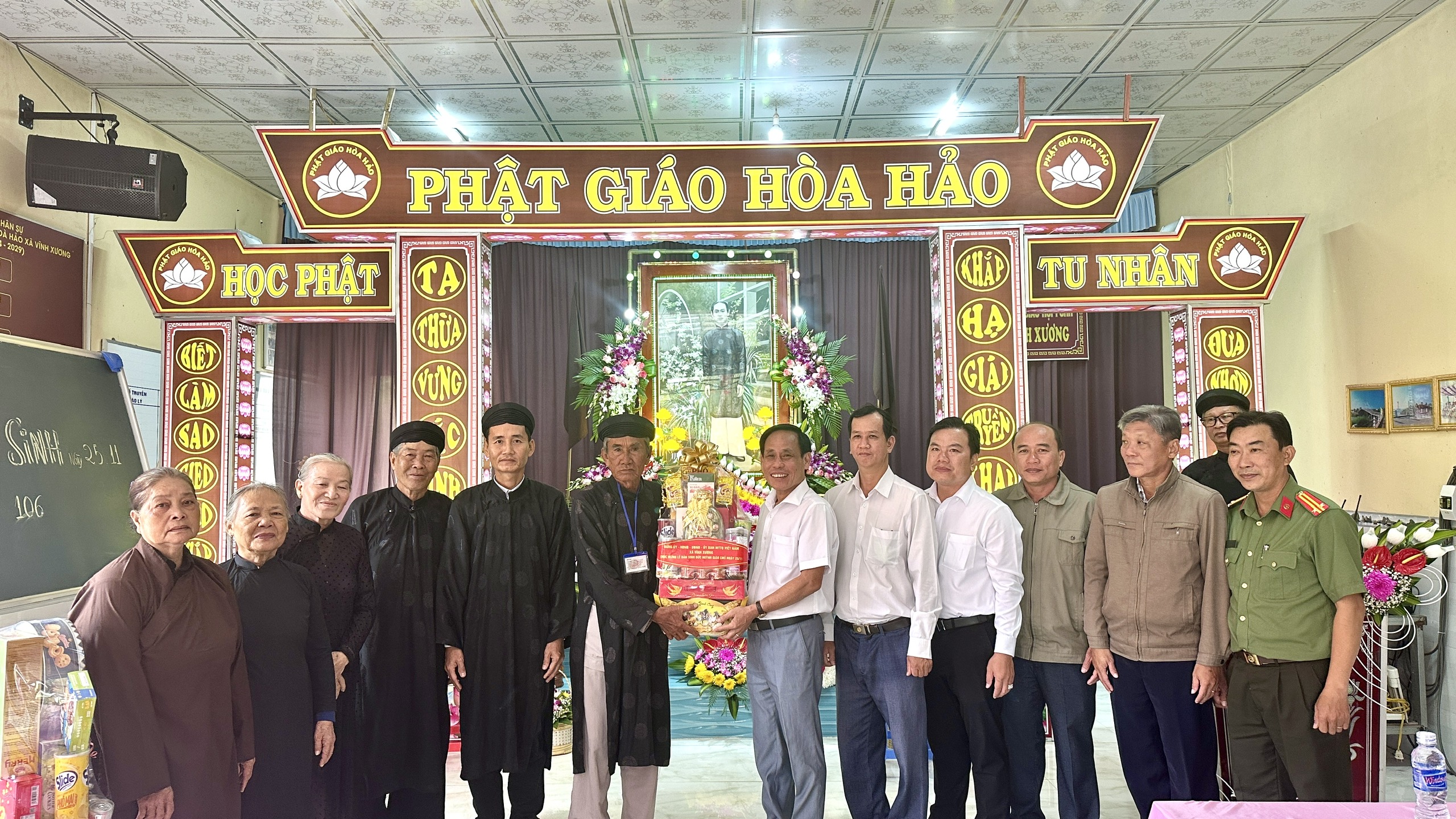 BÍ THƯ ĐẢNG ỦY XÃ VĨNH XƯƠNG ĐẾN THĂM VÀ CHÚC MỪNG BAN TRỊ SỰ PHẬT GIÁO HÒA HẢO XÃ NHÂN ĐẠI LỄ KỶ NIỆM 106 NĂM NGÀY ĐẢN SINH ĐỨC HUỲNH GIÁO CHỦ PHẬT GIÁO HÒA HẢO