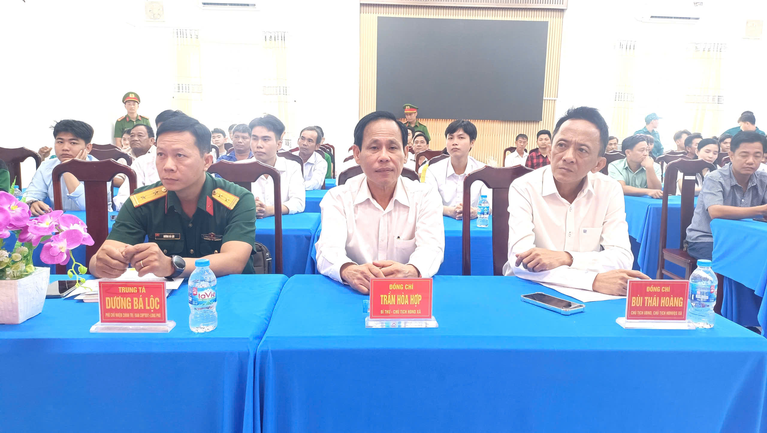 Đến dự buổi lễ có ông Trần Hòa Hợp, Bí thư Đảng ủy – Chủ tịch HĐND xã; ông Trần Văn Tiến, Phó Bí thư Thường trực Đảng ủy xã; ông Bùi Thái Hoàng, Phó Bí thư Đảng ủy – Chủ tịch UBND xã – Chủ tịch Hội đồng NVQS xã; Trung tá Dương Bá Lộc, Phó Chủ nhiệm Chính trị Ban Chỉ huy Phòng thủ khu vực 1 – Long Phú; cùng lãnh đạo các ban, ngành, đoàn thể xã, đại diện gia đình và các thanh niên trúng tuyển NVQS năm 2026.