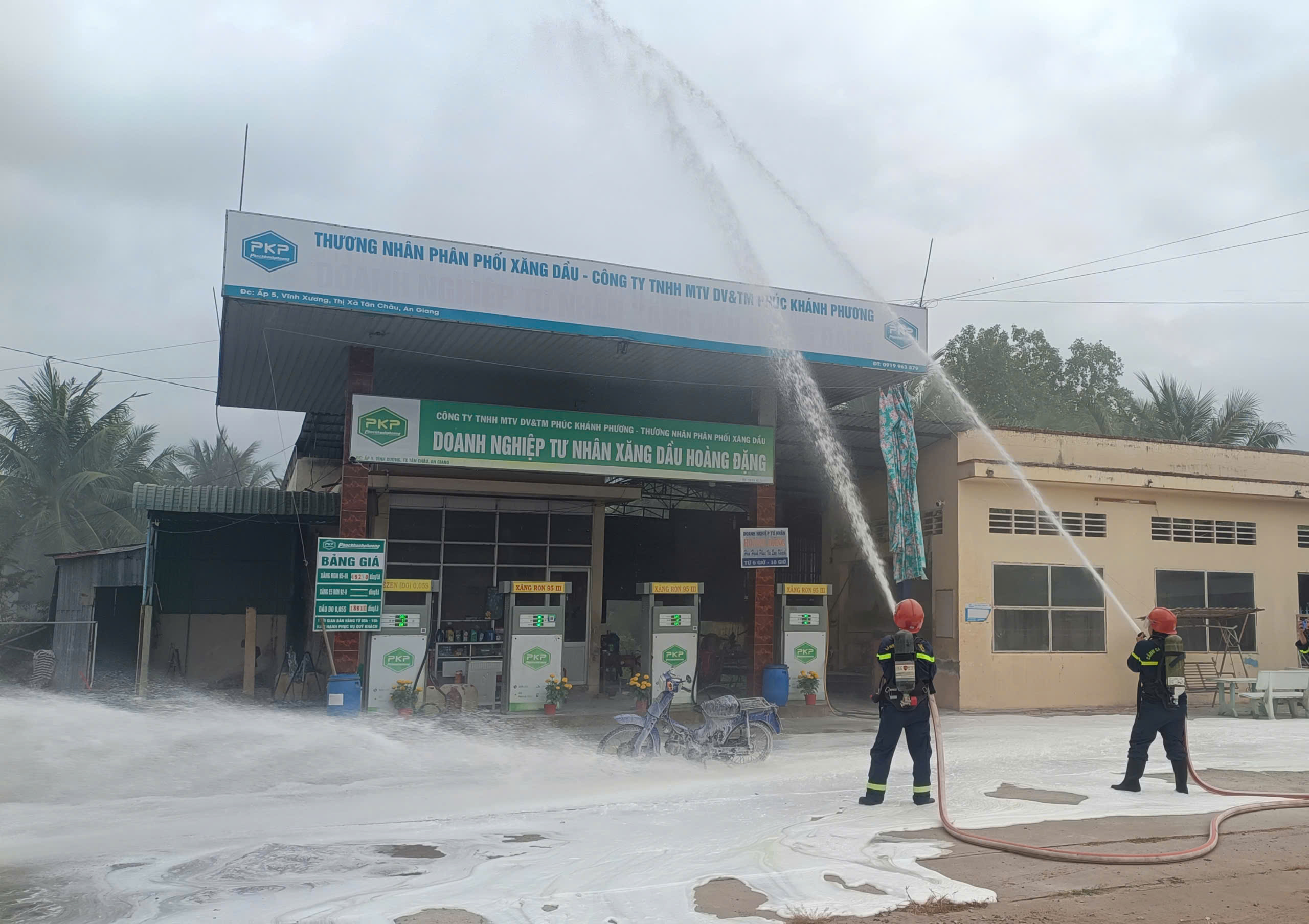 Tình huống giả định được đặt ra vào khoảng 9 giờ cùng ngày tại khu vực trụ bơm rót xăng dầu. Do khách hàng bất cẩn sử dụng nguồn lửa trong lúc đổ xăng, đã xảy ra cháy nổ tại trụ bơm, đám cháy có nguy cơ lan rộng, gây mất an toàn nghiêm trọng về người và tài sản.