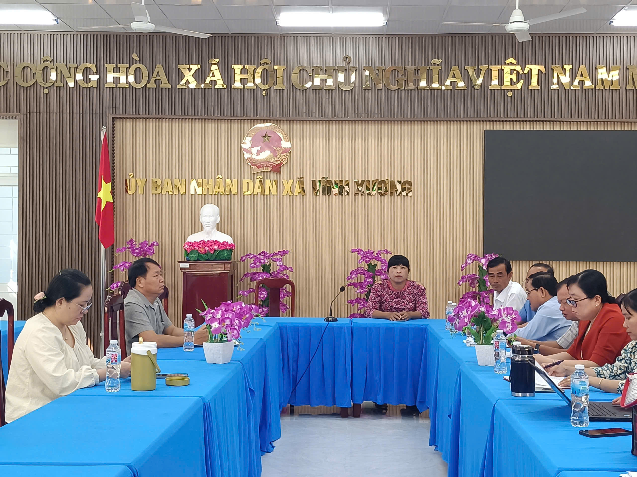 Phòng Văn hóa – Xã hội xã Vĩnh Xương vừa tổ chức hội nghị triển khai kế hoạch Hội thi Hùng biện tiếng Anh cấp xã năm học 2025–2026. Bà Huỳnh Thị Nhung – Trưởng phòng Văn hóa – Xã hội xã Vĩnh Xương chủ trì hội nghị.